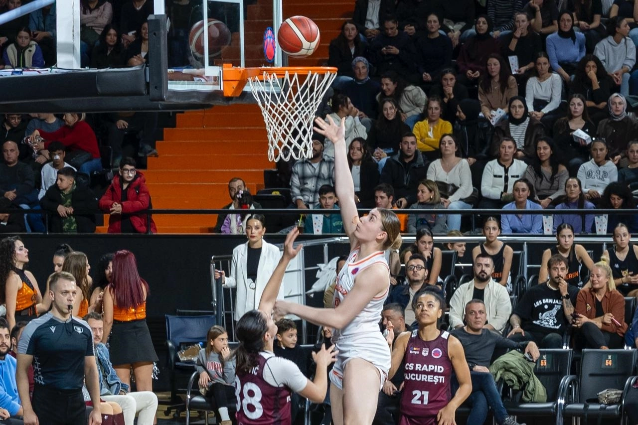 BASKETBOL Kadınlar Eurocup 1’inci Tur rövanş maçında Çimsa ÇBK Mersin, Romanya ekibi Rapid Bucuresti’yi konuk etti. Karşılaşmayı 95-87’lik skorla kazanan ÇBK Mersin, son 16 turuna yükseldi. (DHA)
