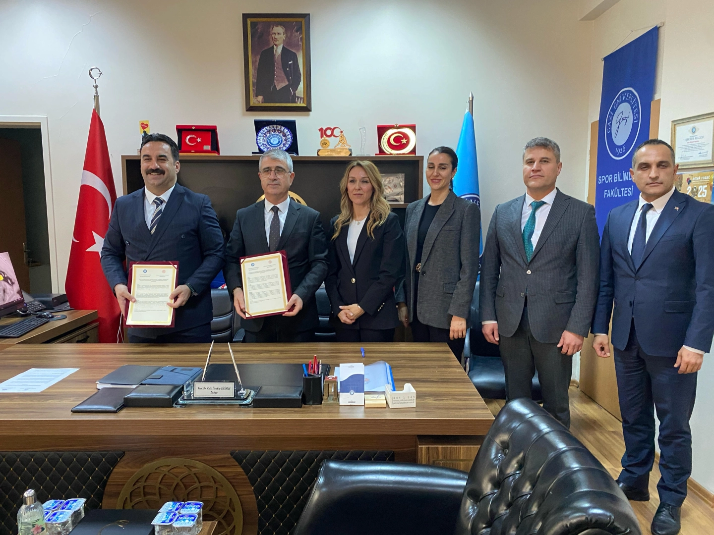 Mikail KARAMAN/ANKARA,(DHA)- GAZİ Üniversitesi, Spor Bilimleri Fakültesi ve Ankara Gençlik ve Spor İl Müdürlüğü arasında, spor eğitimi alanında, kamu-kurum iş birliği protokolü imzalandı.Gazi Üniversitesi, Spor Bilimleri Fakültesi öğrencilerinin teorik bilgilerini Ankara'nın önde gelen spor tesislerinde pratiğe dökebilmeleri için Gazi Üniversitesi ve Ankara Gençlik ve Spor İl Müdürlüğü arasında kamu-kurum iş protokolü imzalandı. Protokol törenine, Gazi Üniversitesi Spor Bilimleri Fakültesi Dekanı Prof. Dr. Halil İbrahim Cicioğlu ve Ankara Gençlik ve Spor İl Müdürü Mustafa Çelik ve Gazi Üniversitesi, Spor Bilimleri Fakültesi hocaları katılım gösterdi. Cicioğlu, imzalanan protokolle en büyük hedeflerinin, akademik ve sportif çalışmaların hep beraber yürütülmesi, pekiştirilmesi ve bunu da hem akademik yönden hem de spor yönünden başarıya transfer edilmesi olduğunu ifade ederek, “Bu anlamda çok ortak paylaşımımız ve hedefimiz var. Bu hedefler doğrultusunda Türk sporuna en iyi ve en büyük hizmeti Türk sporunun bilimsel anlamda mihenk taşı olan Gazi Üniversitesi'nde bu desteğin verilmesi bizim için çok önemli. Umarım bu protokol ve bu çalışmalar hem bizim için hem de öğrencilerimiz için hayırlara vesile olur. Bu başarının bir başlangıcı olur” diye konuştu.ÇELİK: TÜRK SPORUNA BÜYÜK BİR KATKI SAĞLAYACAKTIRAnkara Gençlik ve Spor İl Müdürü Mustafa Çelik ise yapılan protokolle kurumlar arası iş birliğinin güzel bir örneğinin yaşandığını ifade etti. Çelik, imzalanan protokolün teorik bilginin pratiğe dökülmesi konusunun önemine vurgu yaparak, “Bence çok kıymetli bir protokol. Özellikle sporun biliminde yetişen değerli öğrencilerimiz, antrenörlerimiz teoriklerini artık alanda uygulamaya dökecekler. Normalde zaten staj uygulaması var ama burada farkındalık olarak ortaya koyacağız. Öğrenciler daha çok alanın içerisinde olacaklar. Tabi bizim bünyemizde bulunan deneyimli antrenörlerimizin bilgi ve birikimlerinden yararlanarak da kendilerini geliştirmiş olacaklar. Tabi bu süreç Türk sporuna büyük bir katkı sağlayacaktır. Bunu öyle düşünüyoruz” ifadelerinde bulundu.Protokol, 2030 yılına kadar geçerli olacak. Bu süreçte öğrencilerin gelişimi ortak takip edilecek ve eğitim programları sürekli güncellenecek. İki kurum arasında yapılan protokolde iş birliği kapsamında, öğrenciler profesyonel antrenörler eşliğinde saha deneyimi kazanacak, Ankara'daki spor tesisleri akademik çalışmalara açılacak, ulusal ve uluslararası organizasyonlarda görev alma imkanı doğacak ve performans değerlendirmeleri ortak yapılacak.