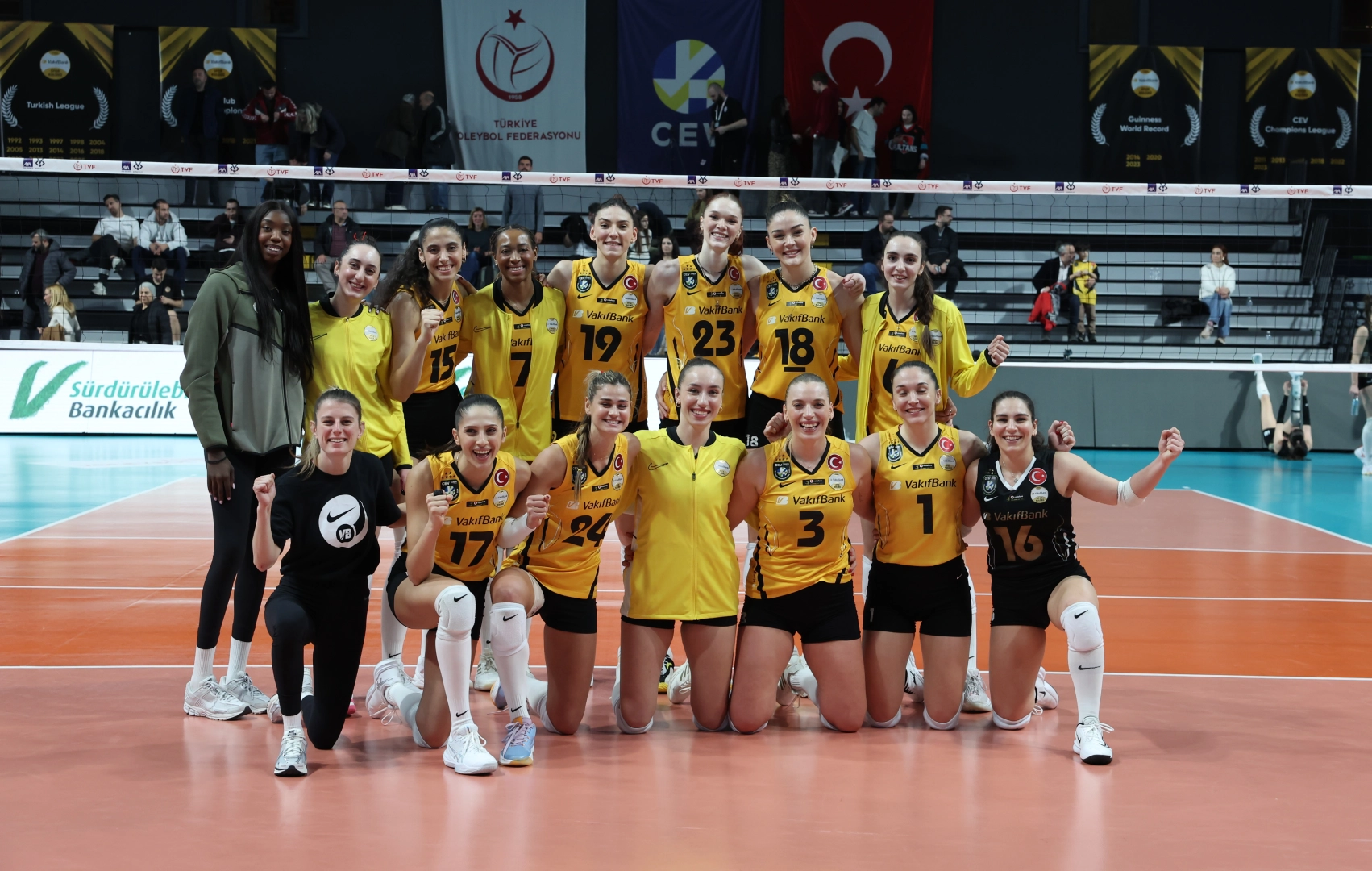 VAKIFBANK: Ogbogu, Cansu Özbay, Markova, Zehra Güneş, Boskovic, Derya Cebecioğlu, Ayça Aykaç Altıntaş (L), Cazaute, Deniz Uyanık