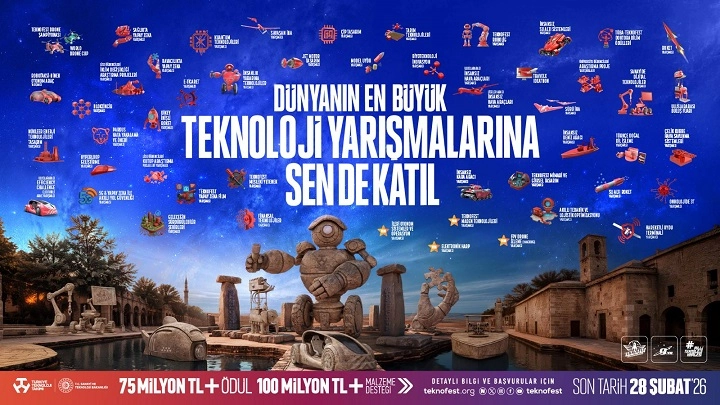 Dünyanın en büyük havacılık, uzay ve teknoloji festivali TEKNOFEST, 2026 yılında binlerce yıllık tarihi ve köklü medeniyet mirasıyla öne çıkan Şanlıurfa’da düzenlenecek. 30 Eylül - 4 Ekim tarihleri arasında GAP Havalimanı’nda gerçekleşecek TEKNOFEST 2026, bilimi ve teknolojiyi tarihin sıfır noktası Şanlıurfa’da milyonlarla buluşturacak. Her yıl yenilenen yarışma kategorileriyle dikkat çeken TEKNOFEST, dünyanın en büyük ödüllü teknoloji yarışmalarına bu yıl da ev sahipliği yapıyor. 2026 yılında 51 yarışma ve 132 alt kategoride düzenlenecek.